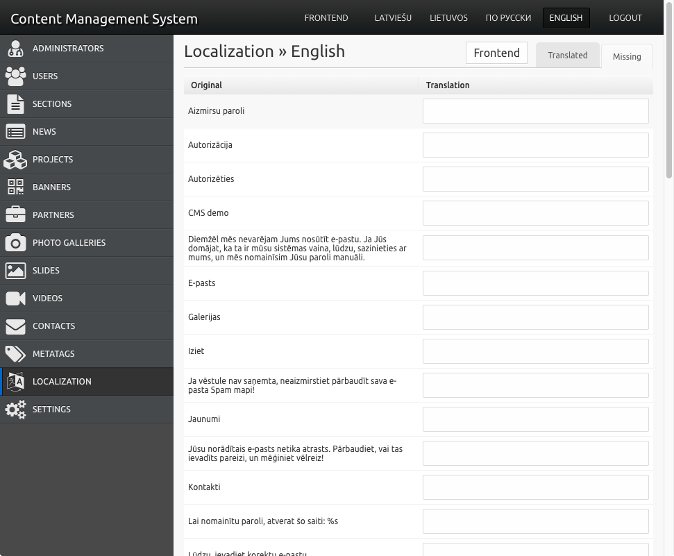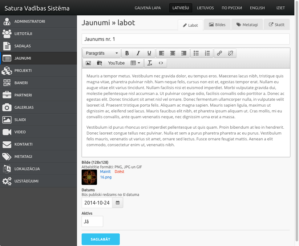 Katrs projekts iekļauj sevī skaistu un ērtu satura vadības sistēmu.